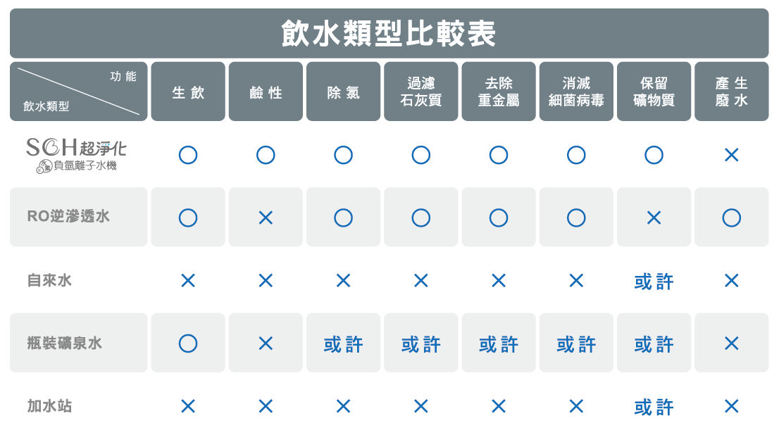 若本身家中使用自來水源,則不建議再煮沸殺菌。台灣自來水經過加氯消毒後,已不含菌,但在長距離水管輸送過程中,雜質、重金屬…等會對水質造成二次汙染。 SCH超淨化水素負氫離子水機所搭配的過濾裝置能有效除氯、抑菌、過濾雜質重金屬,並用物理方式生成負氫離子,為了使濾出的水保有最大負氫離子濃度,因此建議直接生飲,且盡量於15分鐘內飲用完畢,或加蓋保存。