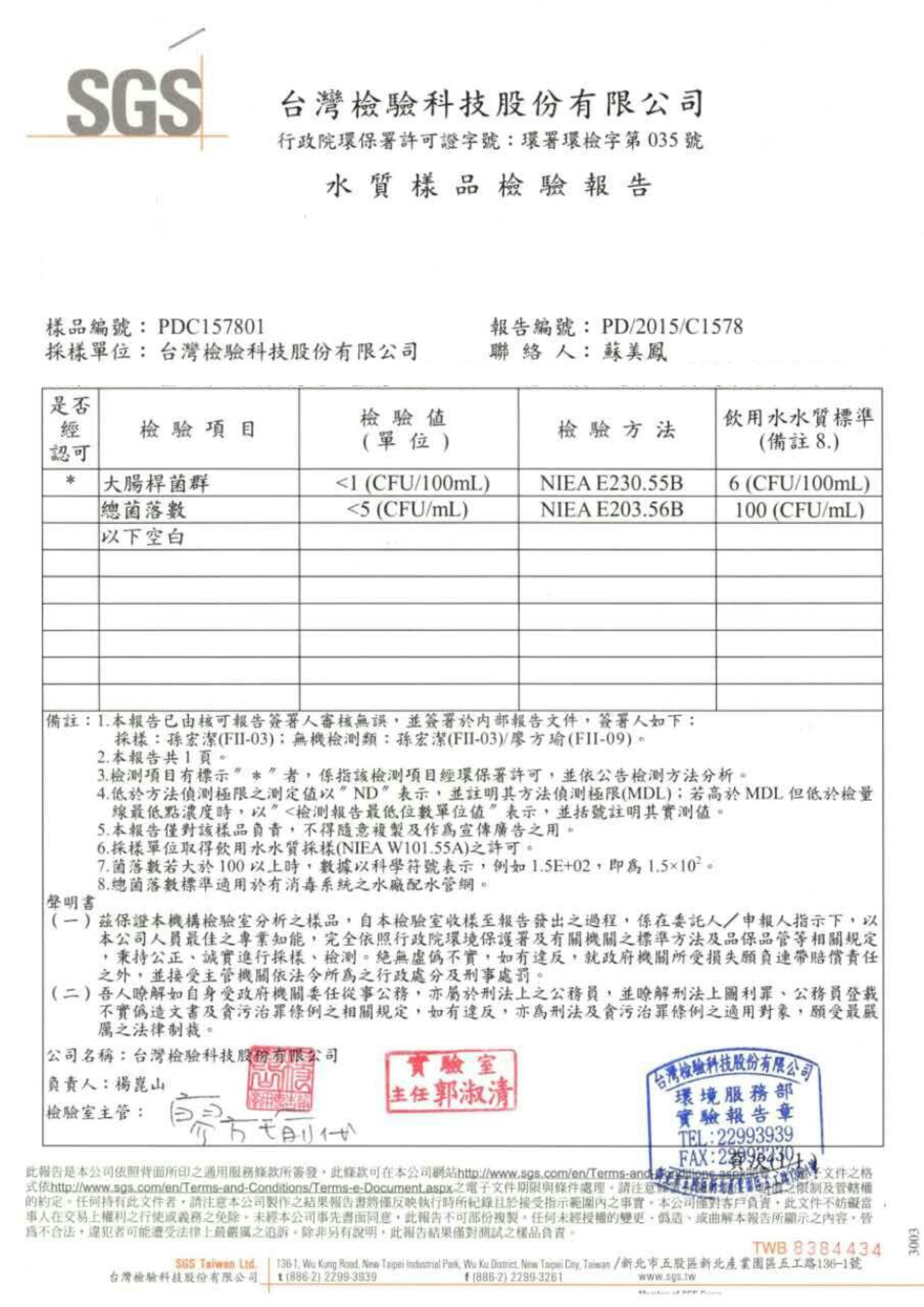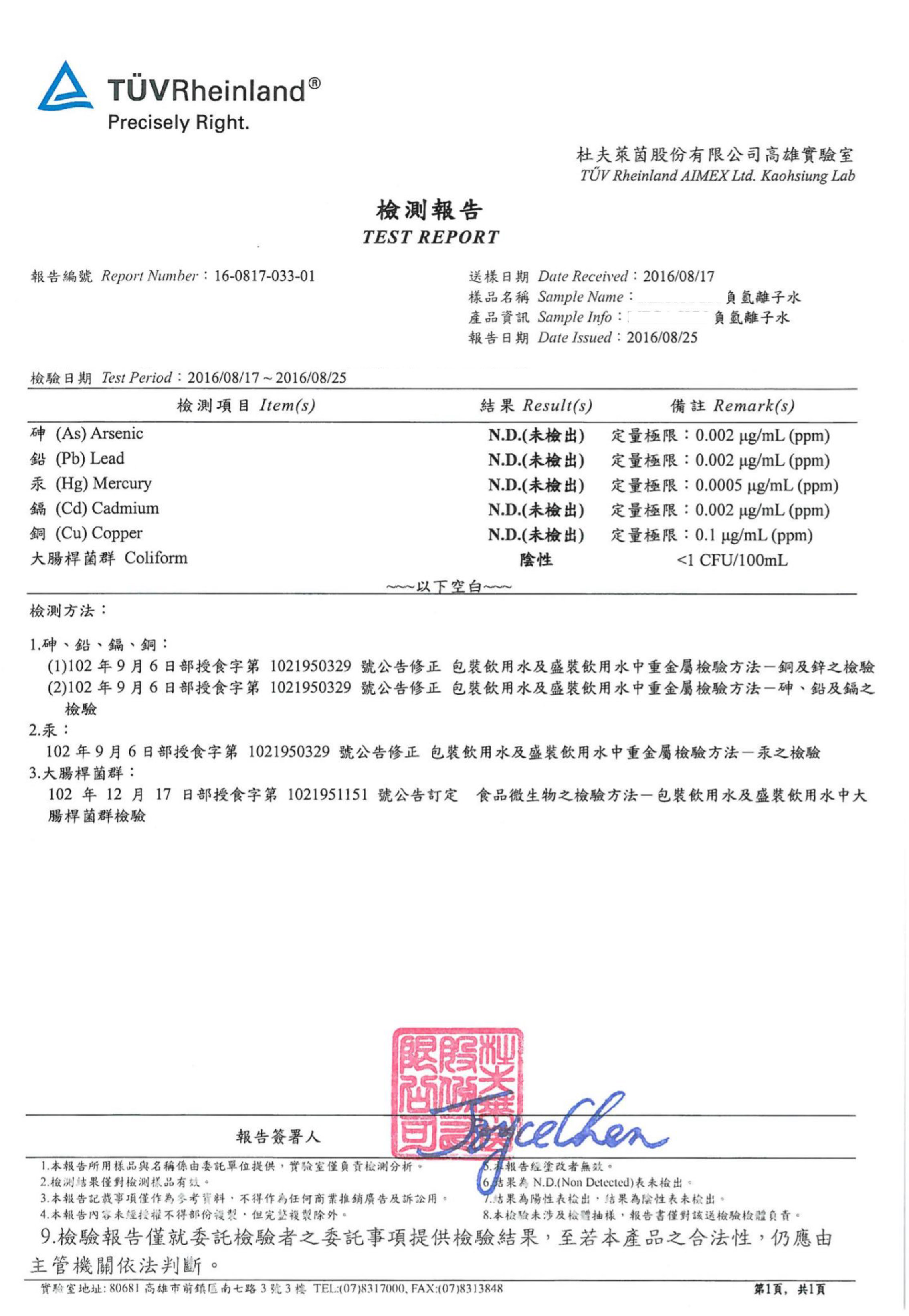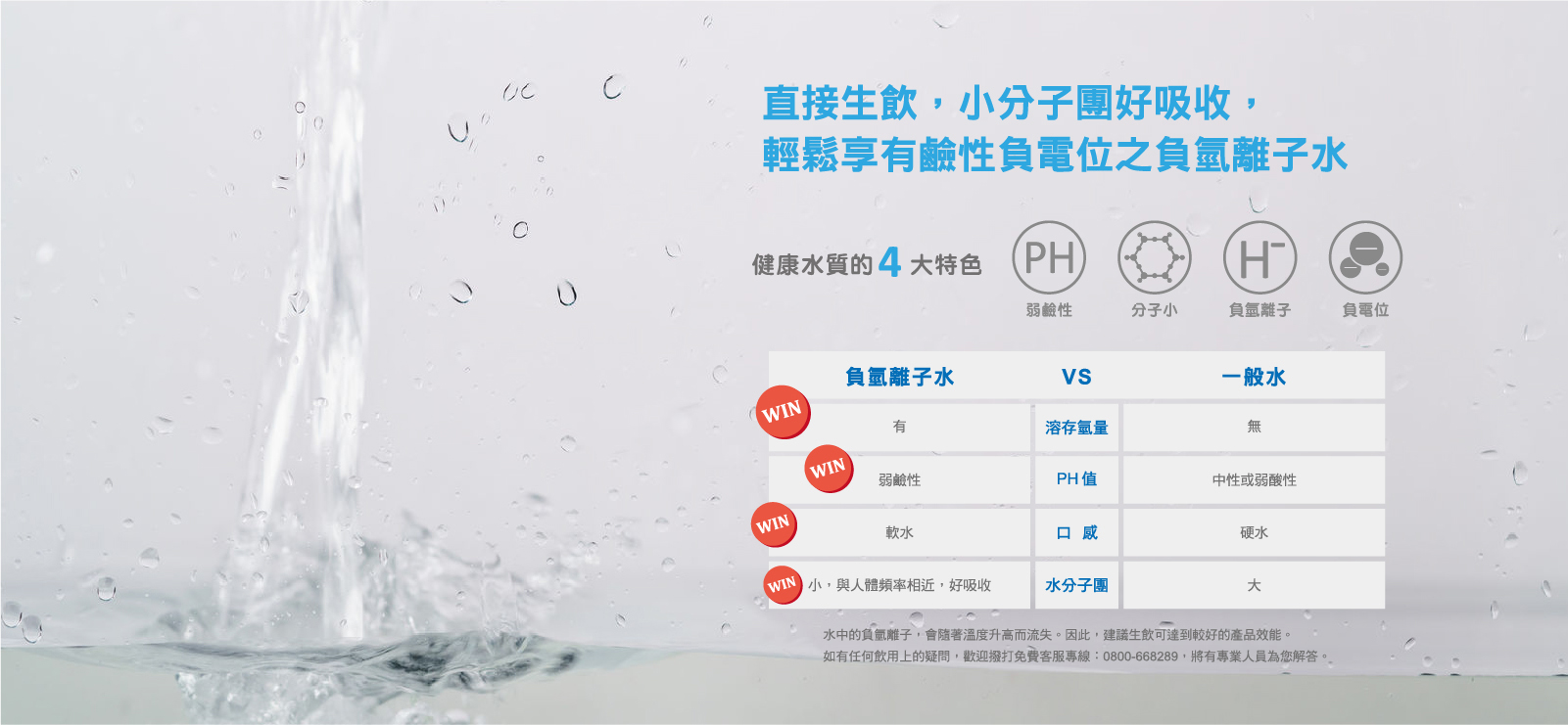 家中為自來水源的前提下,並定期更換濾心,經過5道過濾裝置及2道生成器處理的水,已不含細菌、雜質及有害物質,因此符合生飲級的標準。